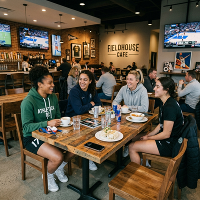 Sleek, modern facilities with secure storage, showers, and neon-lit ambiance to prep before the match.